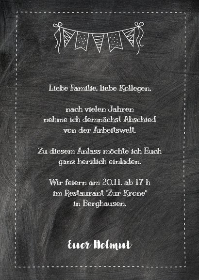 Einladung Zur Abschiedsfeier Ruhestand - Einladungskarten Zum Ruhestand - We did not find results for:. We did not find results for: Maybe you would like to learn more about one of these? Check spelling or type a new query.